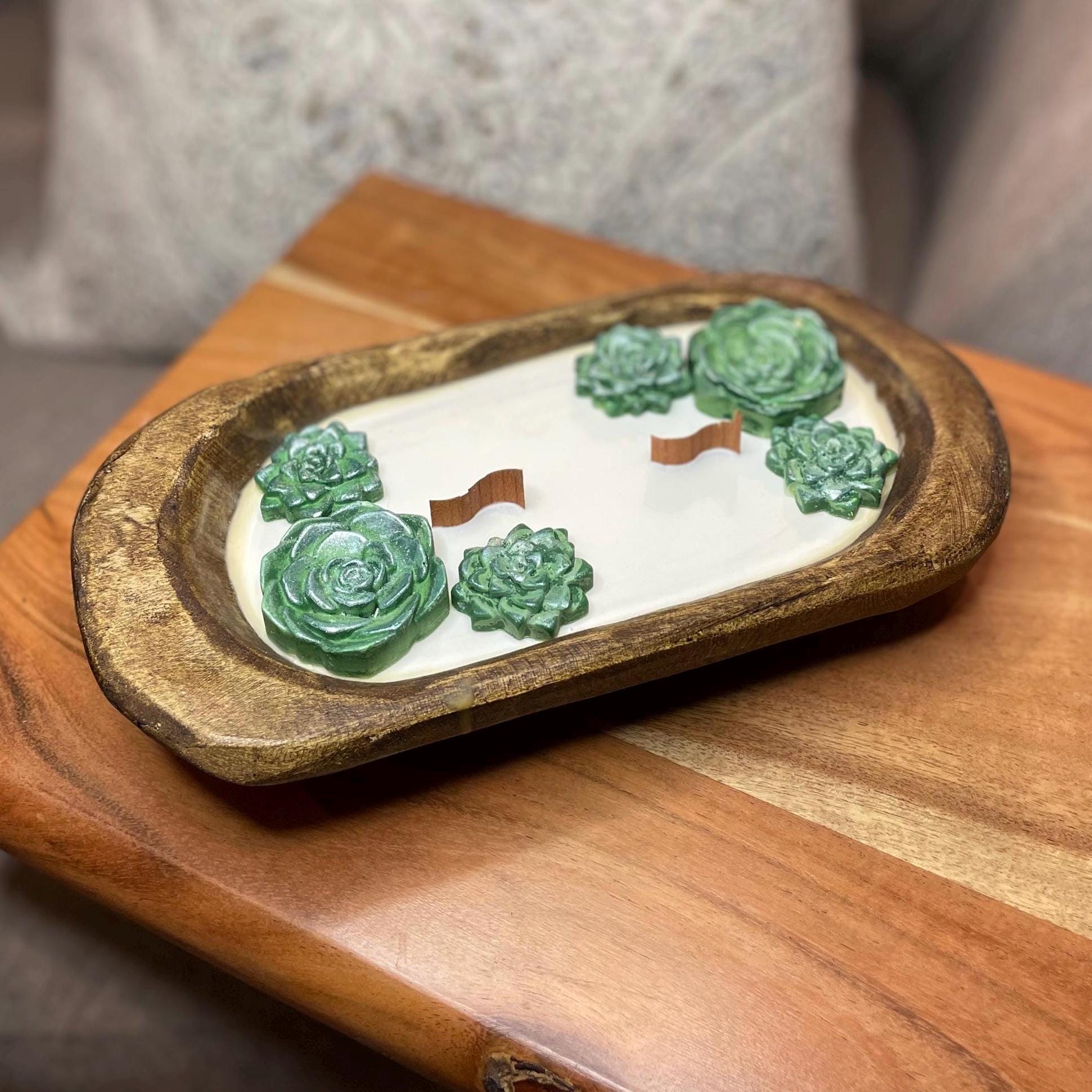 Our Dough Bowl Cactus Rose scented organic soy candle made of hand poured soy/coconut wax blend infused with cactus blossom like fragrance oils. Candle has a beautiful succulent scene to enjoy. Light this candle to fill your home with a sweet and light musk scent for a relaxing aroma, perfect for any occasion! This candle makes a great house warming, birthday, shower, or wedding gift.