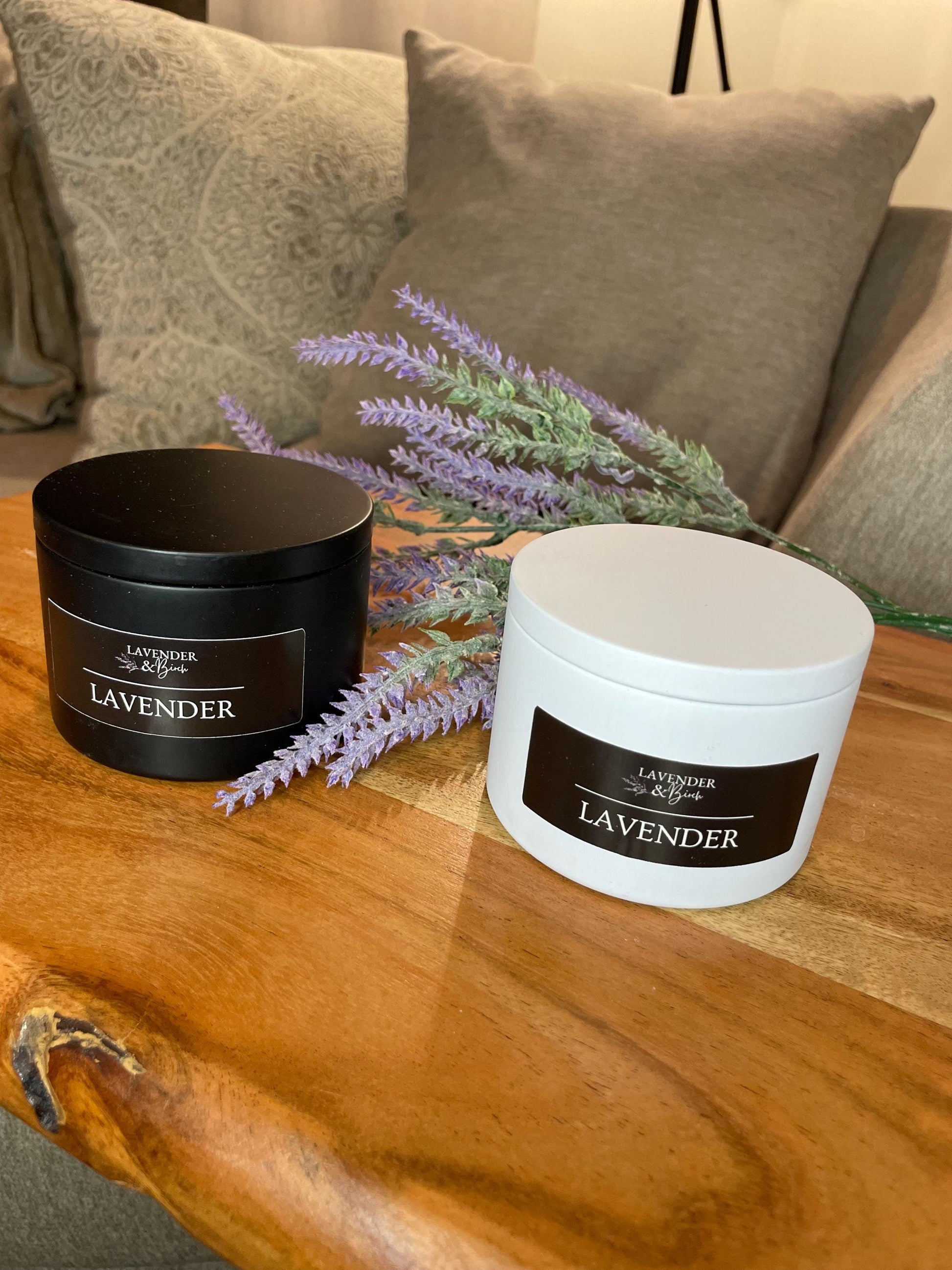 Our Lavender scented candles made of hand poured soy/coconut blended wax combined with lavender fragrance oils are perfect for any room. Light this candle to fill your home with a calming lavender scent for a relaxing aroma, perfect for any occasion!